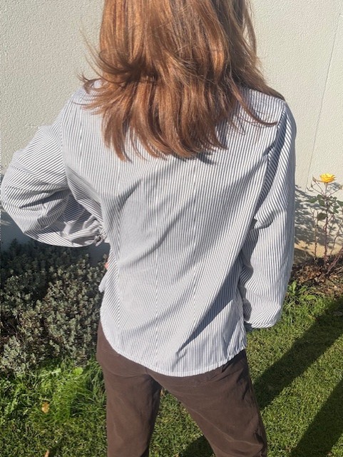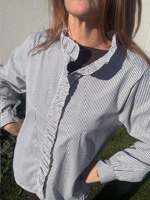 Chemise rayée femme au col victorien élégante et raffinée. Son col plissée apporte une touche chic tandis que les rayures affinent la silhouettes. une pièce féminine et moderne, parfaite pour sublimer vos looks au quotidien.