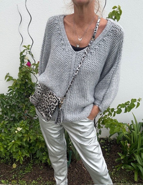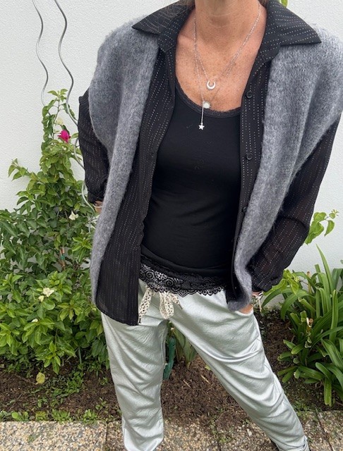 Notre pantalon en silver avec sa coupe ample, resserré à la taille avec son lien ajustable vous plaira de part sa matière douce et chaude, et sa finition argenté. Idéal pour un look chic et confortable.32€