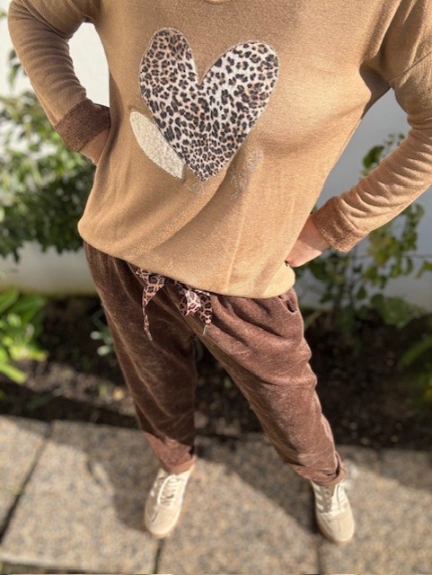 Pantalon en velours côtelé avec lien léopard, confort, style et originalité. Une pièce tendance et facile à assortir pour des looks uniques au quotidien.